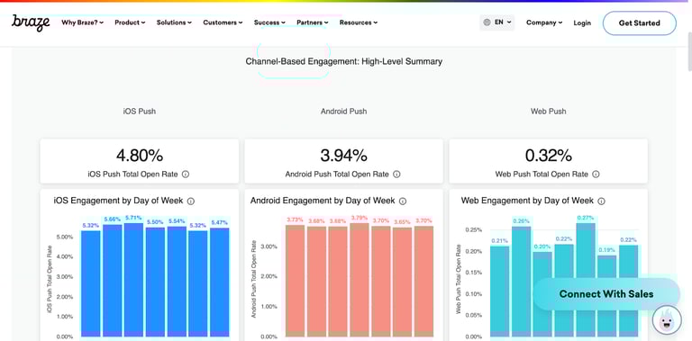Undrar du om din open rate för push notiser är bra eller dålig? Med Braze Benchmarks behöver du inte ens fråga, svaret finns redan. Dessa benchmarks ger dig en tydlig bild av hur dina kampanjer presterar jämfört med din bransch.