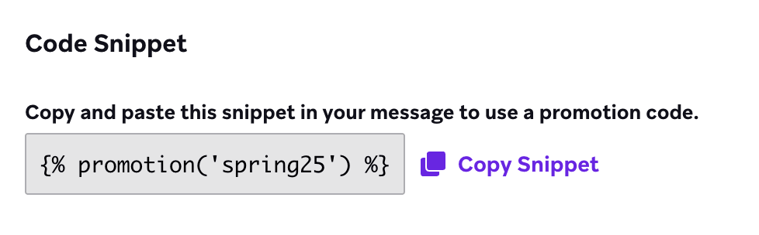 In Campaigns: paste {% promotion('...') %} where the code should appear.